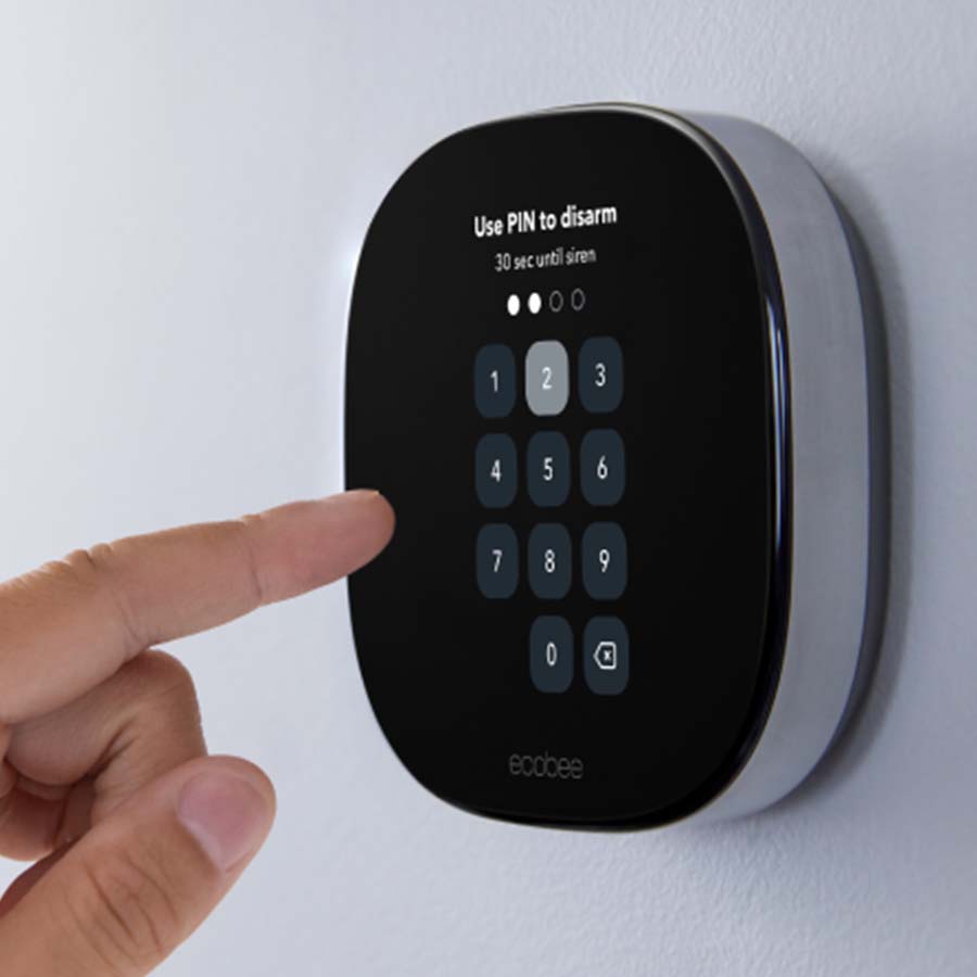 Smart Thermostat Premium acts as your home monitoring hub, with built-in smoke alarm detection, advanced sensor technology to alert you of issues when you’re not home, and freeze detection to prevent burst pipes. Pair it with available sensors and ecobee Smart Security subscription for a whole home solution.