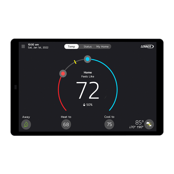 This truly digital product is part of a fully communicating home comfort system. Sensors in the equipment allow the thermostat to diagnose issues and automatically make system adjustments to more precisely and efficiently maintain temperature, humidity and air quality.