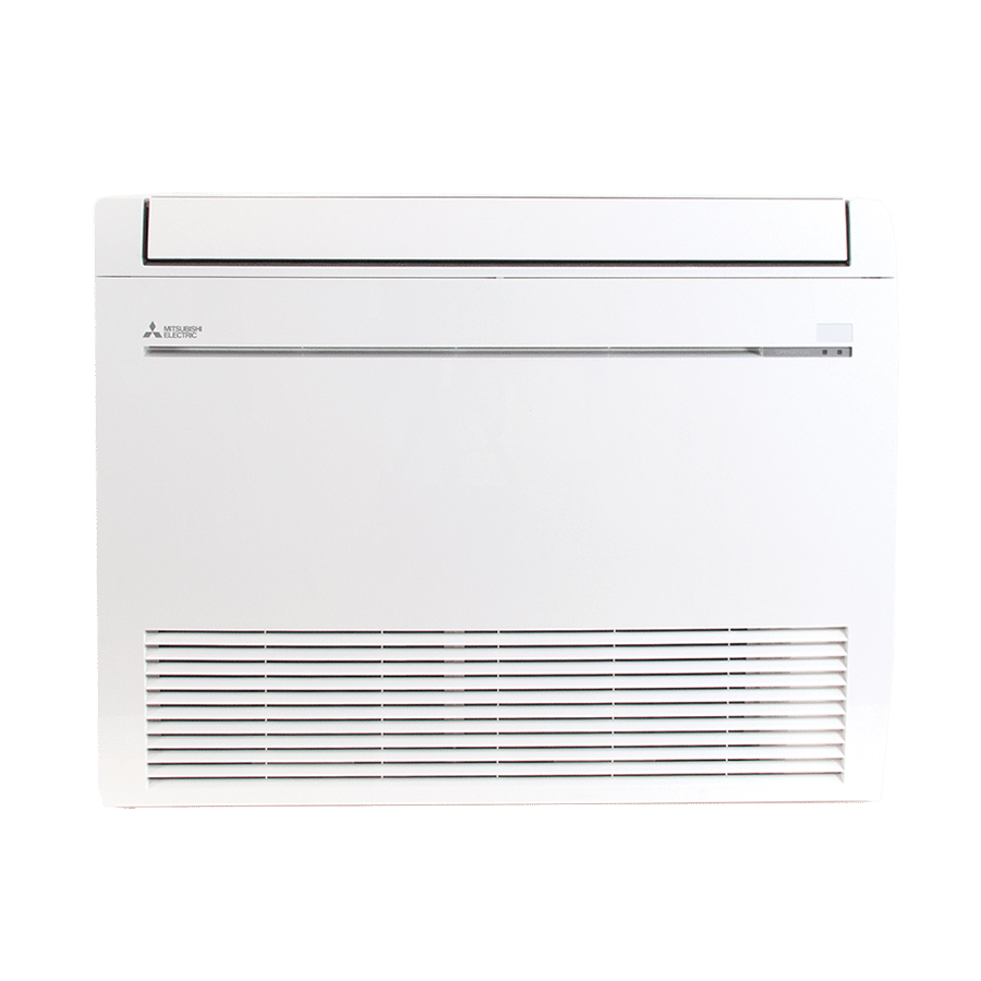 The MFZ-KJ Floor-mounted Indoor Unit mounts low on the wall and can be mounted partially recessed. This indoor unit features rapid heating capability that quickly warms a space to the desired temperature and a multi-flow vane distributing airflow throughout the room, preventing uneven temperatures.